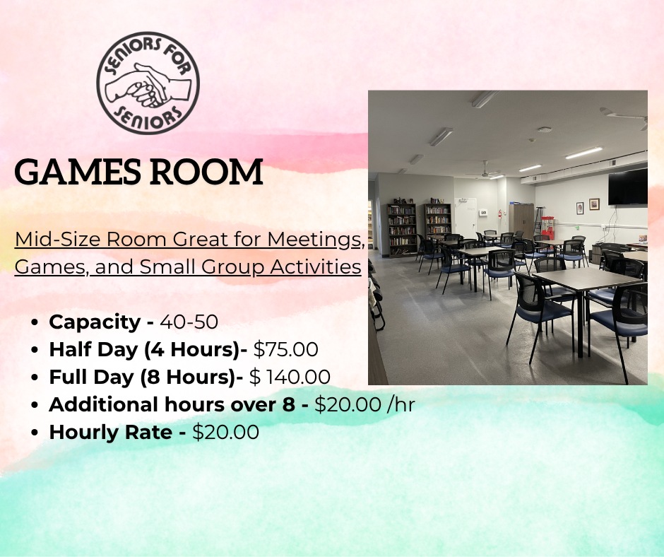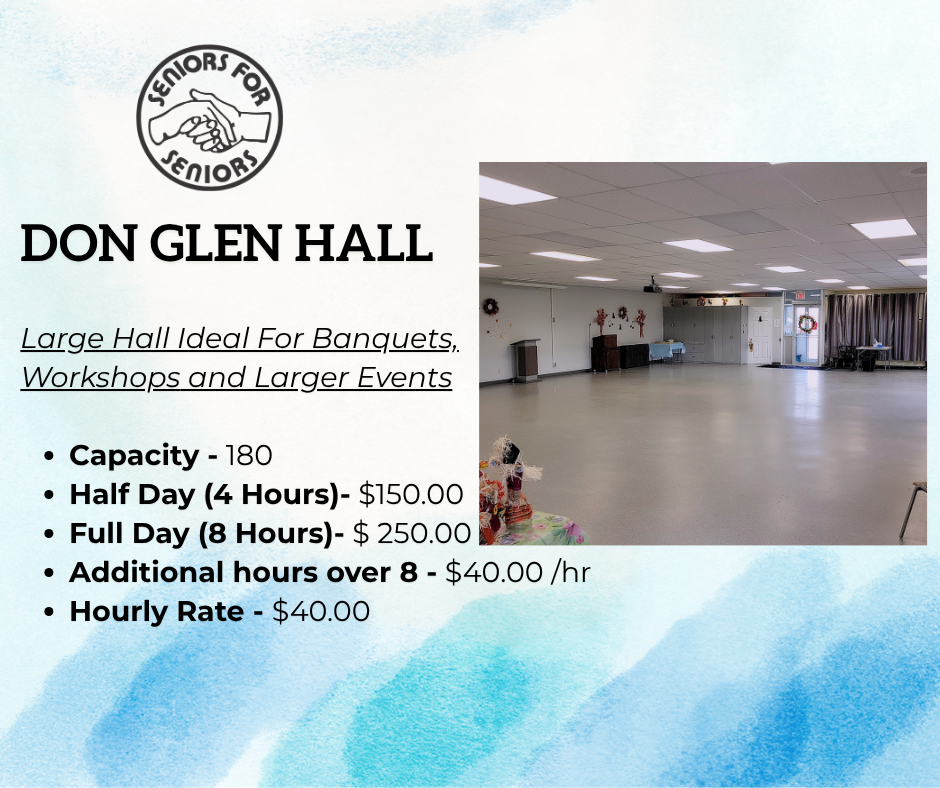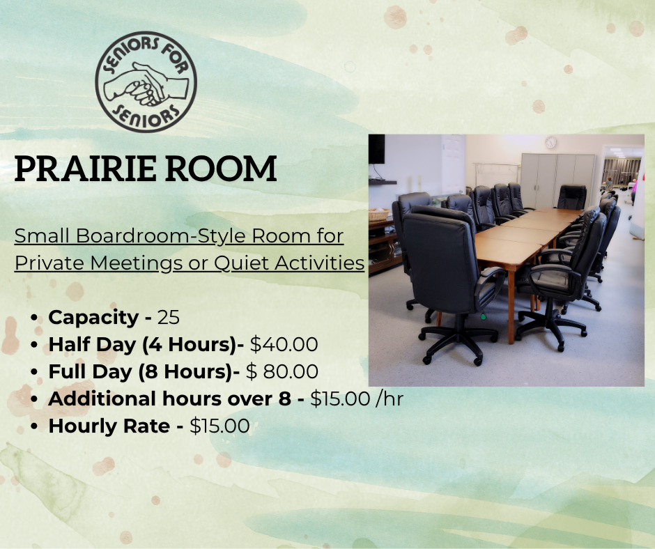 We have space available for small group meetings in our Prairie Room and Games Room that are wheelchair accessible. Additionally, we can also accommodate larger venues in our Don Glen Room. Our Don Glen Room can be licensed, and is wheelchair accessible with ample parking.